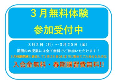 3月の無料体験授業参加生を大募集中です!
